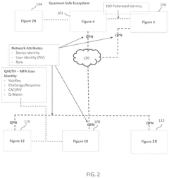 - A quantum-safe ecosystem (QSE) system is developed, incorporating quantum identity and access management, quantum private networks, and a quantum key management system to securely manage user and device identities, encrypt communications, and facilitate secure communication between devices using one-time pad keys generated by a quantum key management system.