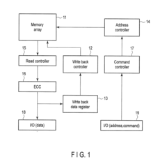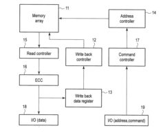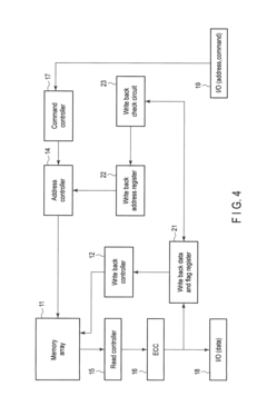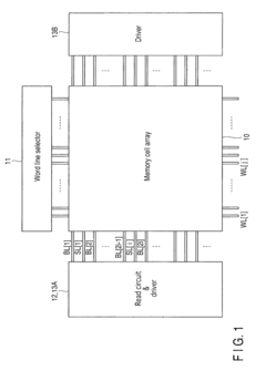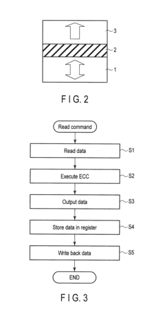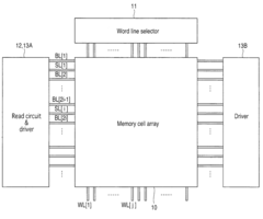 Read disturbance is a significant reliability concern in PMA MRAM, where the read current can inadvertently affect the stored data. Techniques to mitigate read disturbance include optimizing the read current path, implementing reference cell designs, and using specialized sensing circuits. Advanced read schemes can detect potential disturbances and apply corrective measures. Increasing the thermal stability factor of the free layer also helps maintain data integrity during repeated read operations, ensuring long-term reliability of the memory array.Expand Specific Solutions04 Error correction and reliability enhancement circuits