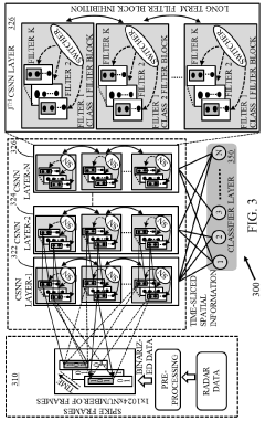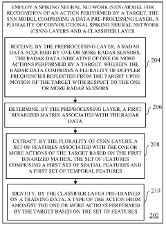 Spiking Neural Networks are designed to process temporal information in a manner similar to biological neurons, making them naturally suited for event-based data. These networks use sparse, binary spike events for computation, which aligns perfectly with the output format of event cameras. SNN implementations can include various neuron models, learning rules, and network architectures specifically optimized for processing the asynchronous event streams, enabling efficient pattern recognition while maintaining temporal precision.Expand Specific Solutions03 Hardware acceleration for real-time SNN inference