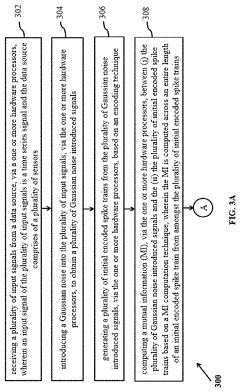 - A method and system that introduce Gaussian noise into input signals to generate optimized spike trains by computing and optimizing mutual information, using a system with processors and modules for encoding, mutual information computation, and optimization, to identify and feed optimized spike trains to SNNs for training.