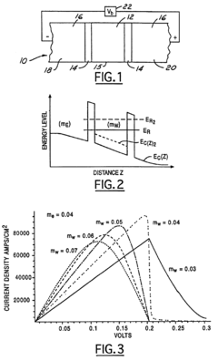 Technical Solution: The Naval Research Laboratory (NRL) has pioneered advanced tunnel diode technologies for high-frequency and radiation-hardened applications. Their research focuses on III-V semiconductor materials, particularly InAs/AlSb/GaSb heterostructures, to create interband tunnel diodes with exceptional peak-to-valley current ratios exceeding 20:1 at room temperature[1]. NRL has developed specialized epitaxial growth techniques that enable precise control of tunneling barrier properties at the atomic scale, resulting in tunnel diodes with cutoff frequencies above 1 THz[3]. Their work includes tunnel diode-based circuit designs for ultra-wideband radar systems, secure communications, and radiation-tolerant space electronics. NRL researchers have demonstrated resonant tunneling diode oscillators operating at frequencies up to 712 GHz with output powers in the microwatt range, representing some of the highest frequency fundamental oscillators achieved in solid-state electronics[6]. Additionally, they have explored quantum cascade structures incorporating multiple tunnel junctions for enhanced functionality in sensing and signal processing applications.