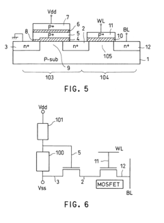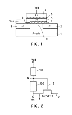 The potential characteristics of tunnel diodes are heavily influenced by the materials used and fabrication methods. Highly doped semiconductor junctions are essential to create the narrow depletion region required for tunneling. Various semiconductor materials including germanium, gallium arsenide, and silicon can be used, each offering different potential profiles and operating characteristics. Advanced fabrication techniques allow for precise control of the potential barrier height and width.Expand Specific Solutions04 Integration with modern semiconductor technologies