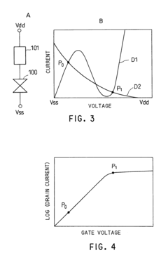 Technical Solution: Texas Instruments has pioneered tunnel diode implementation in ultra-low power microcontrollers and analog signal processing circuits. Their proprietary approach utilizes interband tunneling in silicon-germanium (SiGe) heterojunctions to create tunnel diodes with negative differential resistance regions optimized for sub-threshold voltage operation[2]. TI has developed specialized circuit topologies that leverage tunnel diodes' unique I-V characteristics for voltage reference generation, oscillator design, and analog-to-digital conversion with minimal power consumption. Their tunnel diode-based voltage reference circuits achieve temperature coefficients below 10 ppm/°C while operating at currents in the nanoampere range[4]. TI has also demonstrated tunnel diode oscillators operating at frequencies up to 50 GHz while consuming less than 100 μW of power, making them suitable for energy harvesting applications in IoT devices[7].