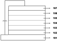 - Device structure optimization: Improvements in OLED device architecture to enhance blue light emission and overall performance. This includes optimizing layer thicknesses, introducing new functional layers, and developing advanced electrode designs to improve charge injection and light outcoupling.