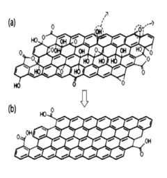- Functionalization of reduced graphene oxide for enhanced properties: Functionalization of reduced graphene oxide with various chemical groups or molecules can tailor its properties for specific applications. By introducing functional moieties onto the rGO surface, characteristics such as dispersibility, biocompatibility, and specific interactions with target molecules can be enhanced. Functionalized rGO demonstrates improved performance in sensing, catalysis, drug delivery, and composite materials, expanding its potential applications across multiple fields.