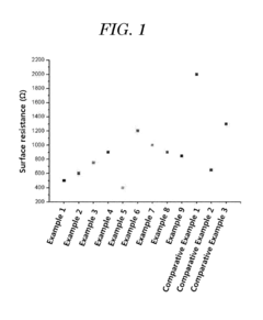 Strengths: Scalable manufacturing process allowing industrial-scale production; proprietary reduction methods that preserve graphene quality; ability to produce films with balanced transparency-conductivity properties. Weaknesses: Higher cost compared to traditional ITO solutions; challenges in achieving uniform conductivity across large-area films; potential long-term stability issues in certain environmental conditions.