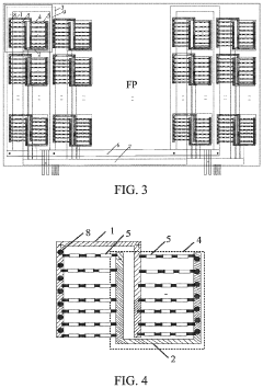 Several thermal management strategies have emerged to address these challenges. Passive cooling solutions utilizing graphite sheets and copper heat spreaders effectively distribute heat across larger surface areas. These materials, with thermal conductivity ratings of 400-1500 W/m·K, significantly outperform traditional aluminum (237 W/m·K) in lateral heat spreading capabilities. For premium display applications, active cooling systems incorporating microfluidic channels or miniaturized heat pipes provide enhanced thermal performance but introduce additional complexity and cost considerations.