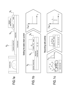 Flexible and wearable bioelectronic interfaces that conform to the body's contours for non-invasive monitoring. These sensors utilize stretchable electronics, conductive polymers, and thin-film technologies to create comfortable, skin-adherent devices that can detect various physiological signals. The flexibility allows for better contact with biological tissues, improving signal quality while maintaining user comfort for extended periods of monitoring.Expand Specific Solutions04 Molecular bioelectronic interfaces