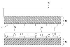Anisotropic conductive adhesives (ACAs) provide electrical conductivity in one direction while maintaining insulation in others. These specialized adhesives contain conductive particles suspended in an insulating adhesive matrix. When compressed between electrical contacts, the particles form conductive paths only in the direction of compression. This unique property makes them ideal for fine-pitch connections in display technologies, flexible circuit bonding, and chip-on-glass or chip-on-flex applications where selective conductivity is required.Expand Specific Solutions04 Thermally conductive adhesives