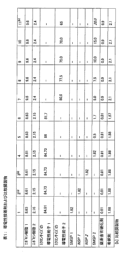 - Polymer matrices for conductive adhesives: The polymer matrix serves as the binding component in conductive adhesives, providing adhesion while suspending conductive fillers. Common matrices include epoxies, silicones, acrylics, and polyurethanes, each offering different properties such as flexibility, thermal stability, and curing mechanisms. The selection of polymer matrix affects the adhesive's processing parameters, environmental resistance, and long-term reliability. Advanced formulations may incorporate hybrid polymer systems to achieve specific performance characteristics.