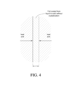 Surface treatments and coating technologies can enhance the properties of amorphous metals or apply amorphous metal coatings to conventional substrates. These processes include thermal spray techniques, physical vapor deposition, and chemical treatments that can improve wear resistance, corrosion protection, and other surface-dependent properties while maintaining the beneficial amorphous structure.Expand Specific Solutions05 Mechanical and physical properties of amorphous metals