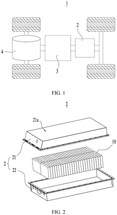 Strengths: Inherently safer LFP chemistry with proven resistance to thermal runaway; innovative structural design that physically limits thermal propagation; comprehensive testing exceeding regulatory requirements. Weaknesses: Lower energy density compared to some competing technologies; heavier overall system weight; more complex manufacturing process for the blade cell configuration.