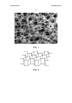 Carbon-based three-dimensional frameworks, including graphene, carbon nanotubes, and porous carbon structures, are specifically designed to host sulfur in cathode materials. These frameworks offer high conductivity, large surface area, and mechanical stability, enabling efficient sulfur utilization. The porous structure of carbon-based frameworks accommodates volume changes during charge-discharge cycles while maintaining electrical contact with sulfur particles.Expand Specific Solutions03 Metal-based 3D conductive frameworks for sulfur immobilization