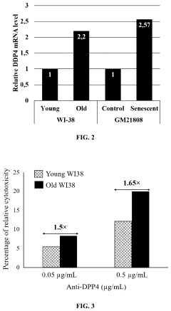 - Development of antibodies and chimeric antigen receptors (CARs) targeting DPP4 and DEP1, which are specifically expressed on senescent cells, to induce their clearance through immune mechanisms like antibody-dependent cell cytotoxicity and complement-dependent cytotoxicity.