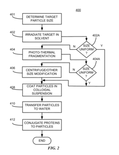 - The development of colloidal suspensions of isotropic and nanocomposite magnetic particles with specific compositions (e.g., Co-Zr, Co-Ti, Co-Sc) and sizes (15-45 nm) produced through pulsed laser ablation, which have amorphous or mixed amorphous-crystalline structures, enhanced magnetic properties, and can be coated with inert materials and conjugated with proteins for targeted applications.