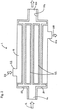 Technical Solution:  Alfa Laval has developed advanced anti-fouling coatings specifically designed for plate heat exchangers in demanding environments. Their technology utilizes a proprietary hydrophobic polymer matrix combined with embedded nanoparticles that create a smooth, low-surface-energy barrier. This coating system employs a dual-action mechanism: physical fouling prevention through reduced surface adhesion and chemical resistance to scaling compounds. The company's AlfaGuard technology incorporates silver ions for antimicrobial properties, particularly effective in food processing and pharmaceutical applications. Their latest generation coatings feature self-healing capabilities that can repair minor scratches through thermally-activated polymer reorientation. Alfa Laval's coatings are applied using a specialized plasma-enhanced chemical vapor deposition process that ensures uniform coverage even on complex geometries of heat exchanger plates.