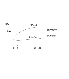 - An antifouling device featuring a platinum-based electrocatalyst coated on a titanium anode-forming member, attached via an insulating adhesive to the seawater-side surface, with a DC power supply and automatic potential control to generate oxygen while suppressing chlorine production, preventing marine organism adhesion without thermal activation or excessive cost.