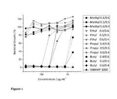 Technical Solution: DSM has developed advanced antimicrobial biomedical polymers utilizing their proprietary BioPM technology platform. Their approach incorporates quaternary ammonium compounds (QACs) into polymer matrices to create contact-killing surfaces that disrupt bacterial cell membranes. The company has successfully engineered polymers with controlled release mechanisms for antimicrobial agents, allowing for sustained efficacy over extended periods. Their research has demonstrated effectiveness against both Gram-positive and Gram-negative bacteria, with particular success against MRSA and E. coli strains. DSM's biomedical polymers feature tunable degradation profiles, making them suitable for various medical applications including implantable devices, wound dressings, and drug delivery systems. Their materials show antimicrobial efficacy while maintaining biocompatibility with human tissues.