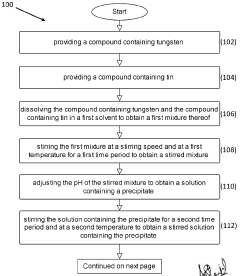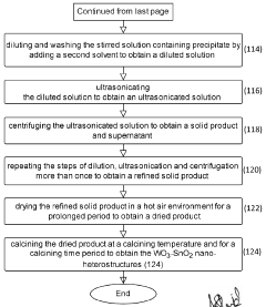 - The synthesis of WO3-SnO2 nanoheterostructures for degrading organic dyes and converting CO2 to methane using natural sunlight, involving a process that includes dissolving tungsten and tin compounds, adjusting pH, ultrasonication, centrifugation, and calcination to produce a photocatalyst capable of efficient dye degradation and CO2 photoreduction.