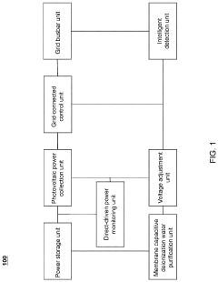 - A desalination system integrating a photovoltaic direct-driven group with a municipal power grid-connected group, including a photovoltaic power collection unit, power storage unit, voltage adjustment unit, and intelligent detection system, to stabilize and manage power supply directly to the membrane capacitive deionization unit, reducing energy loss and ensuring reliable operation.