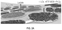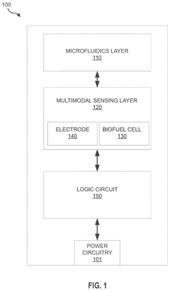 Specialized enzymatic catalysts designed to enhance the efficiency of biofuel cells by optimizing the oxidation of sweat components. These catalysts include modified enzymes with improved stability and activity, as well as novel immobilization techniques that extend the operational lifetime of the biofuel cells. The enhanced catalytic performance increases power output from sweat, enabling the operation of more power-demanding biosensing functions.Expand Specific Solutions05 Miniaturized and integrated biosensor systems