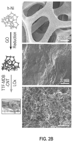 The electrode materials used in sweat biofuel cells require particular attention to biocompatibility while maintaining optimal electrochemical performance. Carbon-based nanomaterials, including carbon nanotubes and graphene derivatives, have emerged as leading candidates due to their excellent conductivity, large surface area, and relatively good biocompatibility profiles. These materials can be functionalized with biocompatible coatings to further enhance their integration with biological systems while preserving their catalytic properties.