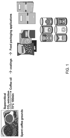 - The development of bio-based biodegradable coatings using oil extracted from spent coffee grounds, which is epoxidized and used to create epoxy and polyurethane coatings with tailored mechanical, thermal, and barrier properties suitable for various packaging materials such as plastics, paper, and metals, utilizing polyacids, polyamines, and cyclocarbonates as curing agents.