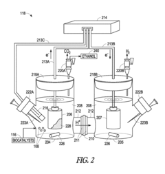Bioelectrosynthesis systems employ electroactive microorganisms to convert electrical energy and carbon sources into valuable chemicals and fuels. These systems can be configured to produce specific compounds through careful selection of microbial communities, electrode materials, and operating conditions. Recent advances include the development of selective catalysts, improved electron transfer mechanisms, and integrated process designs for enhanced product recovery.Expand Specific Solutions04 Electrode Materials and Modifications for Bioelectrochemical Systems