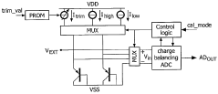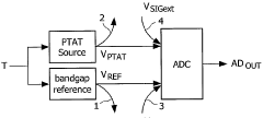 - A method for calibrating digital temperature sensors by measuring and adjusting the internal reference voltage source, using direct or indirect measurement techniques, allowing for electrical voltage mode calibration that can be performed post-packaging and without additional device pins, focusing on reducing the error of the bandgap reference voltage.