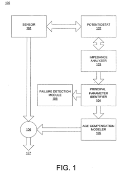 Technical Solution: Endress+Hauser has developed the Memosens calibration technology for electrochemical sensors that digitizes the calibration data and stores it directly in the sensor head. This revolutionary approach allows sensors to be calibrated in optimal laboratory conditions and then installed in the field without signal degradation. Their Memocheck calibration verification tools provide standardized testing procedures that verify sensor performance against traceable standards. Endress+Hauser's Heartbeat Technology continuously monitors sensor health between calibrations, providing predictive diagnostics on calibration status. Their research has established mathematical models for sensor drift compensation that extend calibration intervals while maintaining measurement accuracy. The company has also pioneered the development of automated cleaning procedures integrated with calibration cycles to eliminate contamination effects on calibration accuracy.
