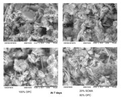 Development of novel cement alternatives and supplementary cementitious materials that require less energy to produce and generate fewer emissions than traditional Portland cement. These include geopolymers, alkali-activated materials, magnesium-based cements, and various industrial byproducts like fly ash and slag. By partially or completely replacing conventional cement with these alternatives, the carbon footprint of concrete can be substantially reduced while maintaining or even enhancing performance characteristics.Expand Specific Solutions03 Environmental impact assessment and lifecycle analysis