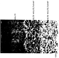 Technical Solution: Mitsubishi Heavy Industries has developed advanced ceramic coating systems optimized for thermal cycling resistance in gas turbine and power generation applications. Their technology utilizes sophisticated atmospheric plasma spray (APS) and suspension plasma spray (SPS) techniques to create ceramic coatings with engineered microstructures that accommodate thermal stresses. MHI's research has focused on developing lanthanum zirconate-based ceramic compositions that demonstrate superior phase stability during thermal cycling compared to conventional coatings. Their multi-layer approach incorporates specialized MCrAlY bond coats with optimized aluminum content that form highly adherent aluminum oxide scales. Testing has confirmed these coatings can withstand over 1,800 thermal cycles between operating and ambient temperatures while maintaining structural integrity. MHI has also pioneered the use of segmented ceramic coating designs that incorporate pre-engineered stress relief features to accommodate thermal expansion differences during cycling. Recent innovations include the development of nano-structured ceramic compositions that demonstrate improved sintering resistance during extended high-temperature exposure.