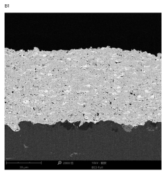 Process-related barriers include inconsistent coating microstructure and properties when scaling from laboratory to industrial production. The thermal spray process parameters significantly influence coating quality, yet achieving reproducible results across different equipment setups and production batches presents considerable challenges. Porosity control remains problematic, with excessive porosity compromising mechanical properties while insufficient porosity reducing thermal insulation capabilities.