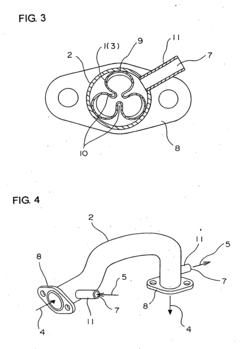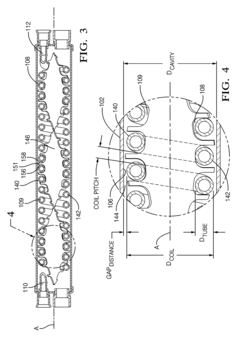 Optimizing flow arrangements and promoting turbulence in compact double-pipe heat exchangers can significantly enhance cooling efficiency. Counter-flow arrangements typically provide better thermal performance than parallel flow. Various turbulence promoters such as twisted tapes, wire coils, or baffles can be inserted into the flow path to disrupt boundary layers and increase heat transfer coefficients. These modifications improve mixing and reduce thermal resistance without substantially increasing pressure drop or exchanger size.Expand Specific Solutions04 Novel cooling media and phase-change techniques