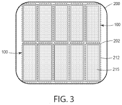 Technical Solution: BYD has developed an integrated composite coating system for their EV batteries that addresses both thermal management and corrosion protection challenges. Their proprietary "Battery Shield" technology utilizes a multi-functional approach combining ceramic-reinforced polymers with phase change materials (PCMs) that absorb excess heat during operation. The base layer contains aluminum oxide and silicon carbide particles dispersed in an epoxy matrix, providing thermal conductivity of 2-4 W/m·K while maintaining electrical isolation properties. This layer bonds directly to battery cell surfaces and contains corrosion inhibitors including benzotriazole derivatives that form protective films on metal substrates. The middle layer incorporates microencapsulated PCMs with melting points calibrated to 45-55°C, absorbing up to 200-250 J/g during thermal events. The outer protective layer features fluorinated polymers with hydrophobic properties (water contact angle >120°) and chemical resistance to automotive fluids. BYD's coating system is applied through automated processes with precise thickness control (150-350 μm) and has demonstrated durability through 1000+ thermal cycles without performance degradation. The system has been implemented across BYD's Blade Battery platform, contributing to its industry-leading safety performance in nail penetration and thermal runaway tests.