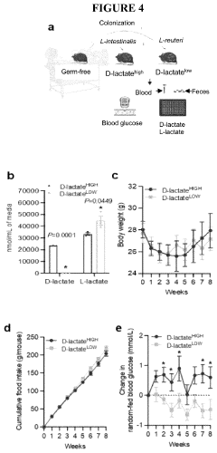 - Administering a polymer comprising L-lactate monomers that inhibit or reduce D-lactate transport across the intestinal barrier, either alone or in combination with agents promoting D-lactate degradation, to lower blood glucose, liver fat, and insulin resistance by trapping D-lactate in the intestinal lumen and preventing its absorption into the bloodstream.