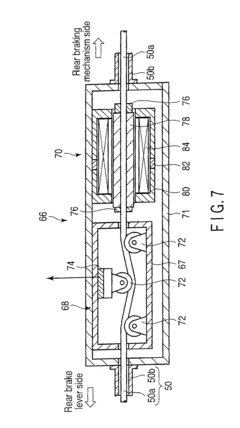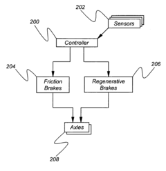 Technical Solution: Robert Bosch GmbH has engineered a cutting-edge regenerative braking system designed for cross-compatibility in multimodal transport. Their system utilizes a scalable electric motor-generator unit that can be adapted to various vehicle sizes and types. Bosch's technology incorporates an advanced power electronics module capable of handling a wide range of voltages and currents, making it suitable for everything from e-bikes to electric trucks[9]. The system features a unique blending algorithm that optimizes the balance between regenerative and friction braking for maximum energy recovery and vehicle stability[10]. Bosch has also developed a cloud-connected control unit that allows for over-the-air updates and system optimization based on aggregated data from various transport modes. This technology has been implemented in several automotive brands and is being adapted for use in light rail and electric bus systems.
