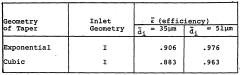 - The design incorporates an elongated separating chamber with a tangentially directed feed inlet and a profile that is either generally exponential or cubic in form, minimizing shear planes and stagnation flows by gradually changing the chamber's cross-sectional dimensions, thereby enhancing phase separation and reducing energy consumption.