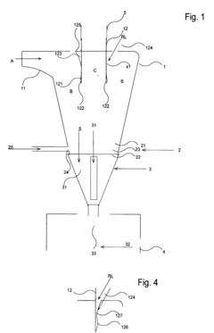 The operating conditions of the cyclone separator, such as the type and abrasiveness of the processed material, flow rates, and temperature, significantly influence the required inspection and replacement intervals. Harsh conditions may necessitate more frequent inspections and shorter component lifespans.Expand Specific Solutions05 Innovative designs for extended component lifespan