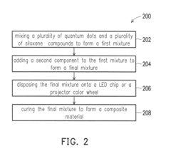 - A composite material is developed where quantum dots are chemically bonded to siloxane compounds with amino groups, allowing for uniform dispersion in a solvent-free matrix formed by oxime-based silicone primer compounds, eliminating the need for solvent removal and reducing manufacturing time and costs.