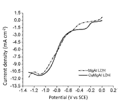 - A nanostructured composite material with a layered hydrotalcite-type ternary structure of CuMgAl LDH, containing metal copper and cuprous ion as a redox couple, is developed, which is electrochemically deposited on a carbon gas diffusion membrane to enhance catalytic activity and selectivity for C2 products.
