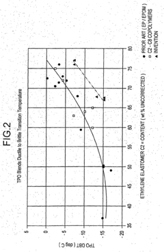 - Development of a branched copolymer of ethylene and an alpha-olefin with high ethylene content (74-95 mole %) and sufficient long-chain branching, allowing for non-agglomerating pellet production and improved impact modification when blended with propylene-based polymers, reducing dependence on costly raw materials.