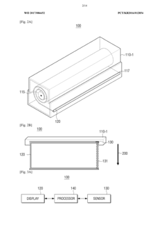 Technical Solution: Samsung has pioneered flexible microdisplay technology through its AMOLED (Active-Matrix Organic Light-Emitting Diode) displays. Their approach involves using polyimide substrates instead of traditional glass, allowing for thinner, lighter, and bendable displays. Samsung's Y-OCTA technology integrates the touch sensor directly into the display panel, reducing thickness and enhancing flexibility. Their flexible displays incorporate a specialized encapsulation technology called Thin-Film Encapsulation (TFE) that protects the sensitive OLED materials from oxygen and moisture while maintaining flexibility. Samsung has also developed advanced pixel structures that maintain display quality even when the screen is bent or folded multiple times. Their Ultra-Thin Glass (UTG) technology provides enhanced durability while preserving flexibility, addressing one of the key challenges in flexible display adoption[1][3].