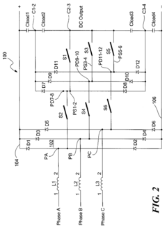 Technical Solution: MIT has developed advanced half-wave rectifier designs for renewable energy systems, focusing on improving efficiency and reducing power losses. Their research includes the use of wide-bandgap semiconductors like GaN and SiC for high-frequency operation[1]. They have also explored synchronous rectification techniques to minimize voltage drops across diodes, potentially increasing overall system efficiency by 2-3%[2]. MIT's work on adaptive control algorithms for rectifiers in variable renewable energy sources has shown promise in optimizing power conversion under fluctuating input conditions[3].