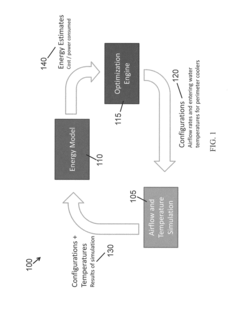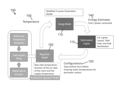 - A simulation-based optimization method that combines airflow and temperature numerical simulations with an energy model and optimization solver to determine optimal cooling set points, reducing energy consumption while maintaining desired inlet temperatures, and includes techniques for variance reduction, automatic calibration, and regression modeling for real-time control.