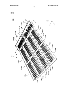 Technical Solution: NVIDIA has developed sophisticated thermal management solutions for data center GPUs that incorporate advanced heat sink designs. Their NVLink-Switch heat sink technology uses vapor chamber cooling combined with optimized fin structures to manage the extreme heat densities of GPU clusters in AI and HPC applications[1]. NVIDIA's A100 and H100 data center GPUs utilize custom-designed cold plate heat sinks with microfinned copper bases that achieve thermal resistances as low as 0.08°C/W when coupled with liquid cooling systems[2]. Their research has pioneered the use of phase-change materials embedded within heat sink structures to buffer thermal transients during workload spikes, reducing temperature fluctuations by up to 40%[3]. NVIDIA's thermal design process employs AI-driven optimization algorithms that can evaluate thousands of potential heat sink geometries to identify optimal configurations for specific airflow conditions, resulting in designs that deliver 25-30% better thermal performance than conventional approaches[4].
