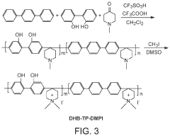 Strengths: Superior microphase separation leading to well-defined ion-conducting channels; excellent balance between conductivity and mechanical properties; advanced computational capabilities for polymer design. Weaknesses: Complex synthesis procedures may limit large-scale production; some designs still face challenges with long-term alkaline stability at elevated temperatures.