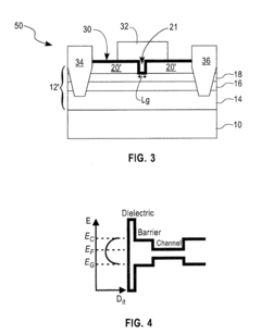 Metal gate electrodes are often used in conjunction with high-K dielectrics to form advanced gate stacks. This combination helps address issues such as Fermi-level pinning and threshold voltage shifts that can occur when high-K dielectrics are paired with conventional polysilicon gates. Work function engineering of metal gates allows for tuning of threshold voltages for both NMOS and PMOS devices. Various metals and metal nitrides such as TiN, TaN, and TiAlN are commonly used as gate electrode materials in high-K metal gate (HKMG) technology.Expand Specific Solutions04 Interface engineering for high-K gate stacks