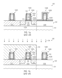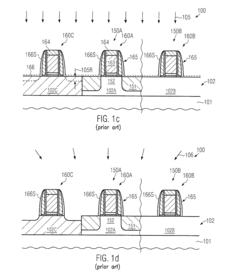Various integration methods are employed to incorporate high-K gate dielectrics into semiconductor manufacturing processes. These include gate-first approaches where the high-K dielectric is deposited before the gate electrode, and gate-last (or replacement gate) approaches where a dummy gate is initially used and later replaced with the high-K dielectric and metal gate. Interface engineering techniques such as nitridation or the use of interfacial layers are also employed to improve the interface quality between the high-K dielectric and the semiconductor substrate.Expand Specific Solutions03 Metal gate electrode integration with high-K dielectrics