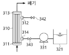 - A hollow fiber membrane water treatment device employing a circulation filtration method that uses supersaturated fluids, such as carbon dioxide gas, to backwash the membranes, preventing damage and contamination while recycling backwashing water without chemicals, and maintaining treated water volume.